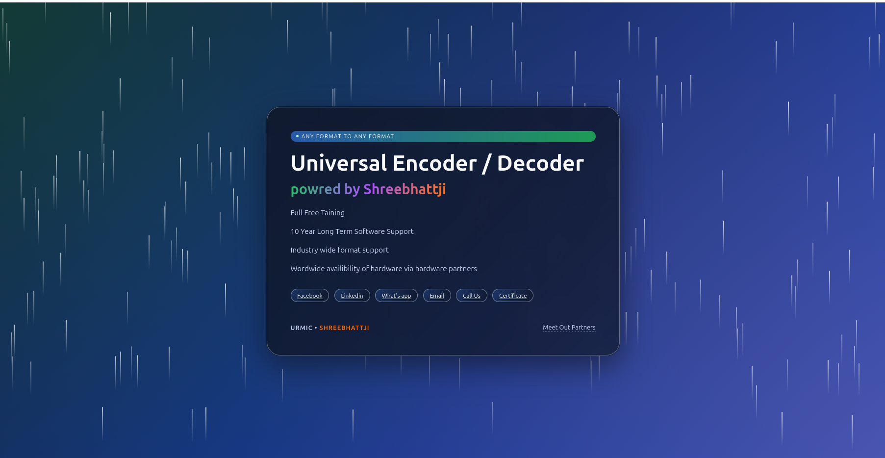 By attending this course you be able to operate URMIC universal encoder decoder .